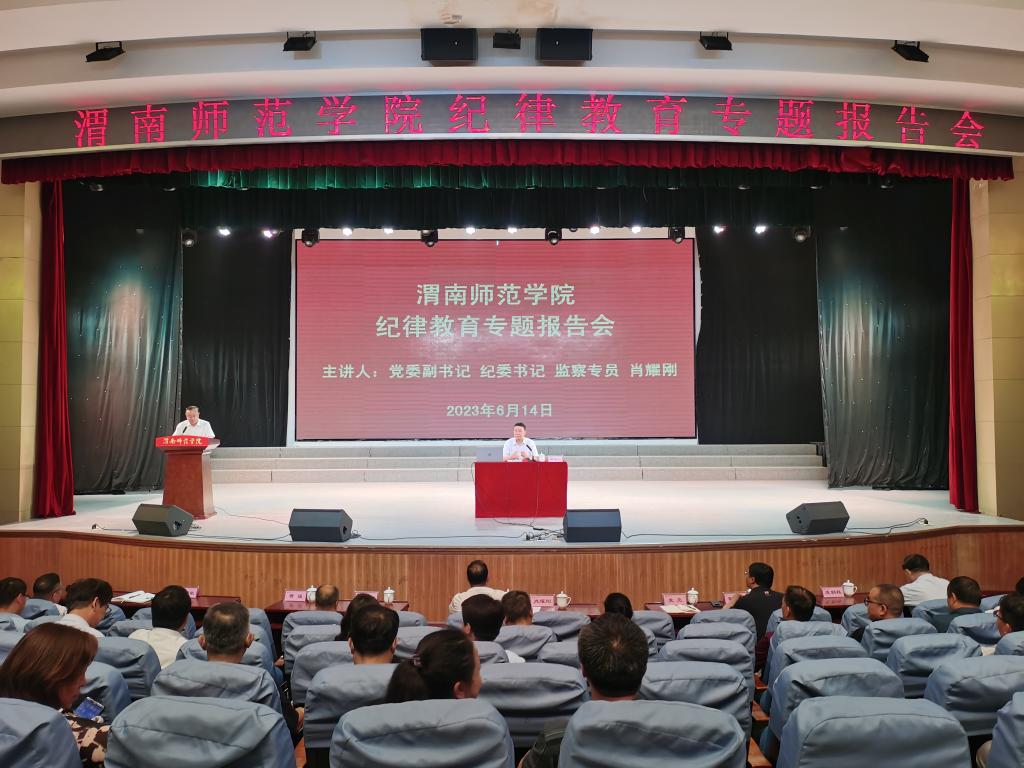 6月14日下午,学校举办纪律教育专题报告会,党委副书记、纪委书记、监察专员肖耀刚作题为“坚持党性原则 筑牢党性根基 严守党的政治纪律和政治规矩”纪律教育专题党课。报告会由党委副书记袁亮主持。