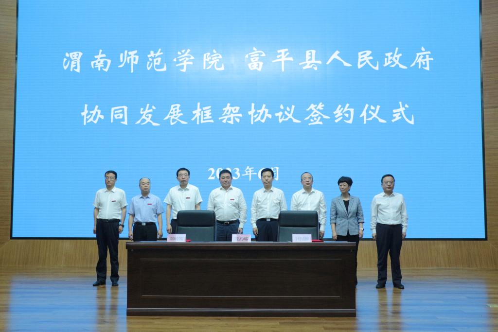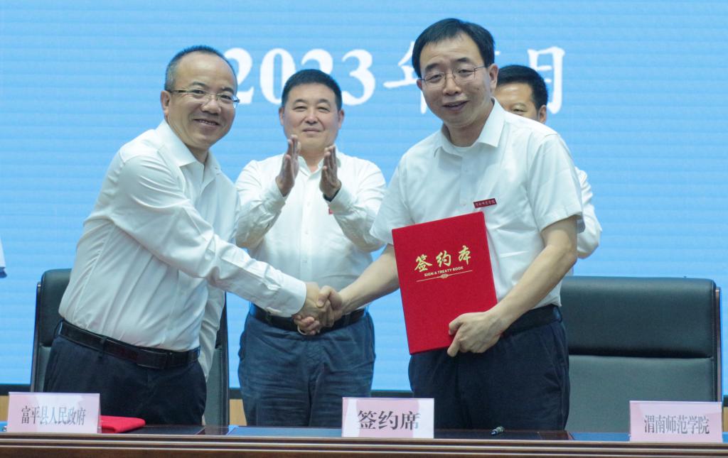 6月29日,我校与富平县人民政府协同发展框架协议签约仪式在富平县干部学院举行,党委书记卓宇,校长张守华,副校长卢爱刚、曹强,渭南市委常委、富平县委书记赵林斌,富平县委副书记、县长景军荣, 富平县委常委、宣传部部长范月丽,富平县委常委、富平县人民政府副县长贾丹,县委常委、县委办主任黎忠利,富平县人民政府副县长詹辉、艾路阳出席活动。