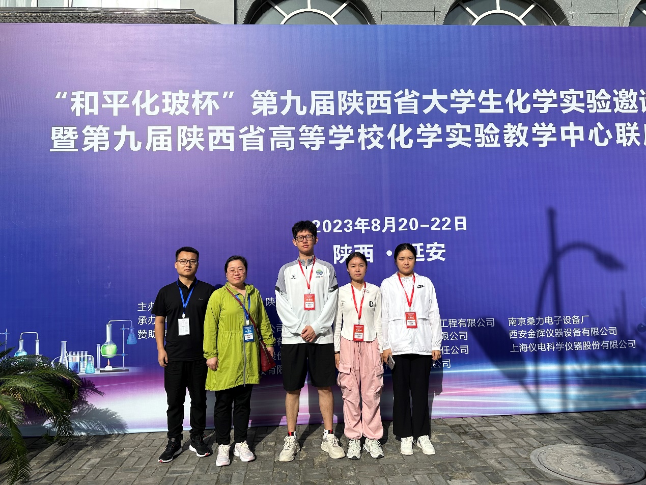 陕西省大学生化学实验邀请赛每两年举行一次,是我省高等院校化学学科最高级别的赛事。比赛分为笔试和实验操作竞赛两个环节进行。受新冠疫情影响,本次比赛与上次比赛时隔4年。在收到竞赛通知后,我校师生积极备赛,前期组织了笔试和实验操作考试海选,从23名同学中选拔出3名参赛学生,并由杨珊、周小强、马咏梅、李雅丽老师组成实验专项培训团队,为3名学生进行了无机及分析、有机、物化、实验安全等实验理论和操作的集中强化训练。