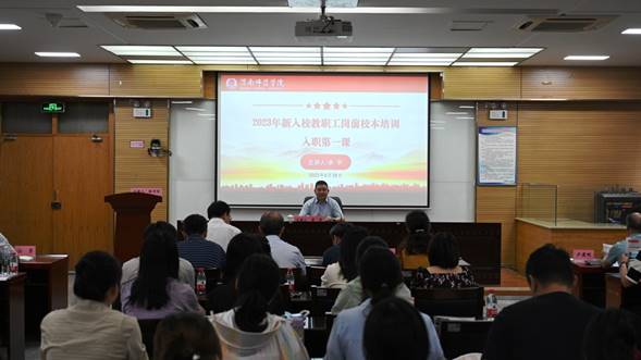 张守华在致辞中介绍了学校的基本情况,分析了当前面临的机遇和挑战,明确了发展目标与任务。他指出,青年教师是学校可持续发展的核心要素,是贯彻学校办学理念、落实立德树人根本任务的重要力量。学校高度重视师资队伍建设,希望通过本次培训帮助新入校教职工尽快熟悉工作环境、融入学校氛围、适应工作岗位要求,促进新入校教职工师德修养、教学科研能力及综合素质的全面提升,增加大家对学校的认同感、归属感,激发教师队伍拼搏奋进活力。