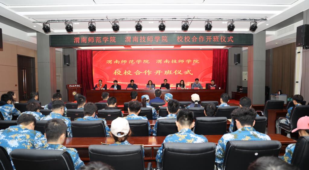 11月3日上午,我校与渭南技师学院校校合作技能型本科学生实训开班仪式在渭南技师学院产教融合楼举行,标志着两校在教育领域的深度合作再度取得新突破。渭南师范学院副校长王菊霞,物理与电气工程学院院长袁卫,副院长张修兴,教务处副处长何小虎;渭南技师学院副院长张卫龙,渭南技师学院教务处处长杨亚楠及物理与电气工程学院20级金工实习学生90余人出席开班仪式。渭南技师学院实训生产管理处处长毛小建主持开班仪式。