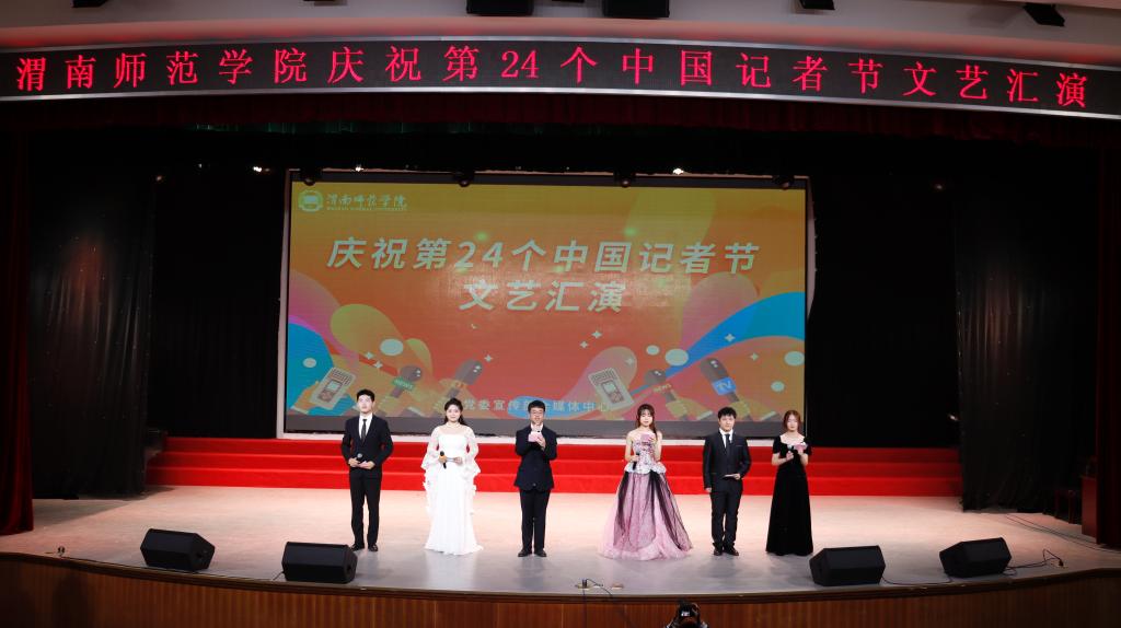 演出开始前,李明敏宣布渭南师范学院首届大学生记者节正式启动并为在场的学生记者送去节日的祝福。大学生记者节的设立是为了给更多学生记者提供一个展示自我的平台,进一步促进校园文化和网络文明建设,将在每年的11月份开展大学生记者节系列活动。仪式中,十余名“优秀学生记者”接受了表彰,并对全媒体主席团成员进行了聘任。