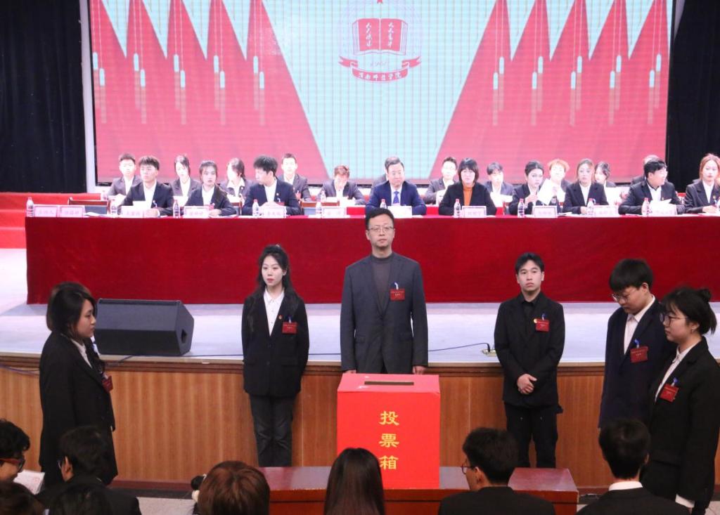 会议听取并审议通过《渭南师范学院第六届学生委员会工作报告》,于卓鑫等21名同学当选第七届学生委员会委员,王富强等4名同学当选学校第七届学生会主席团成员。