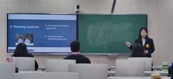 决赛中,每名选手按照抽签次序进行8分钟的说课展示,评委从教师素质、教学设计、教学手段、课件制作等方面给各位参赛选手打分。我校外国语学院的参赛选手沉着应战、发挥出色,经过激烈的角逐,取得了一等奖4名、二等奖3名的优异成绩,英语专业魏瑜芬、孙淑莉、何俊芳等老师被评为优秀指导教师。