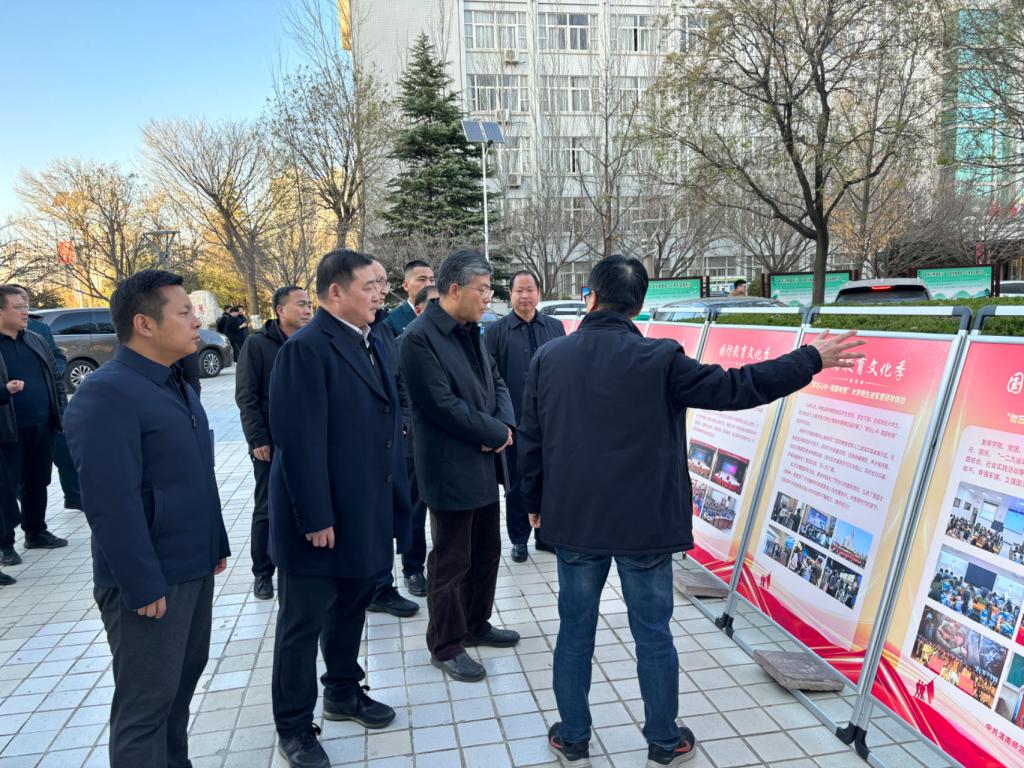 学生工作部副部长马耀斌在同心楼前向巨小弟一行介绍了学校“国防教育文化季”“国防教育教导队”“国旗护卫队”“军事爱好者协会”“征兵动员宣传”开展情况。巨小弟表示,学校将国防教育与思想政治教育深度融合,教育引导广大师生树立国防教育意识、促进学生全面发展等方面成效显著,探索出了一条富有特色的国防教育模式。