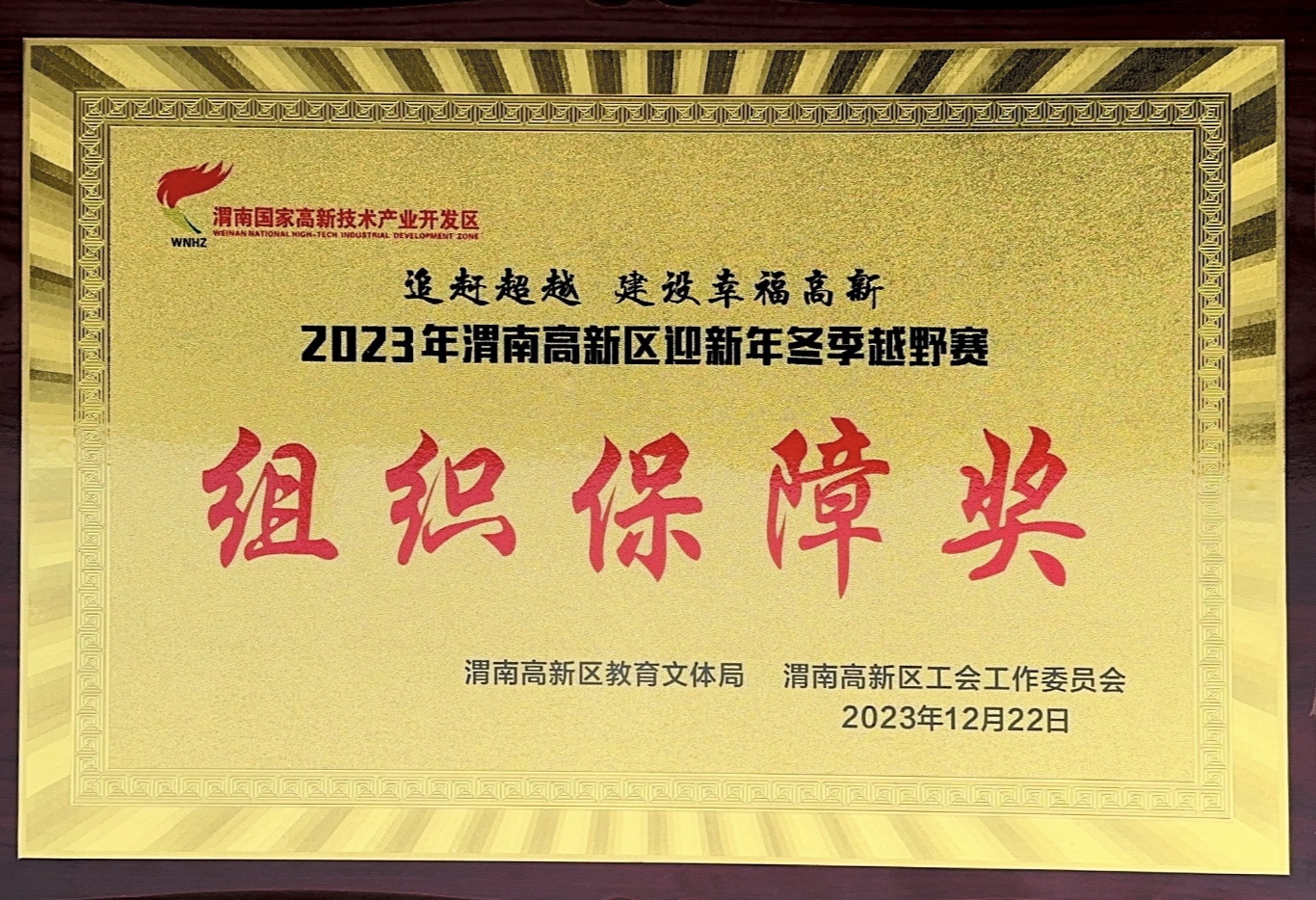 12月22日10时,由渭南市高新区管委会主办,高新区教育文体局和高新区工作委员会承办的“追赶超越,建设幸福高新”2023渭南高新区迎新年冬季越野赛鸣枪开跑。本次比赛共吸引来自全区各个单位共400余名运动员共赴盛会,齐聚赛场。