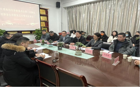 12月27日,党委第二巡察组向音乐学院党总支反馈巡察情况,党委副书记、纪委书记、省监委驻校监察专员、巡察工作领导小组副组长肖耀刚,党委委员、宣传部部长李明敏出席会议。