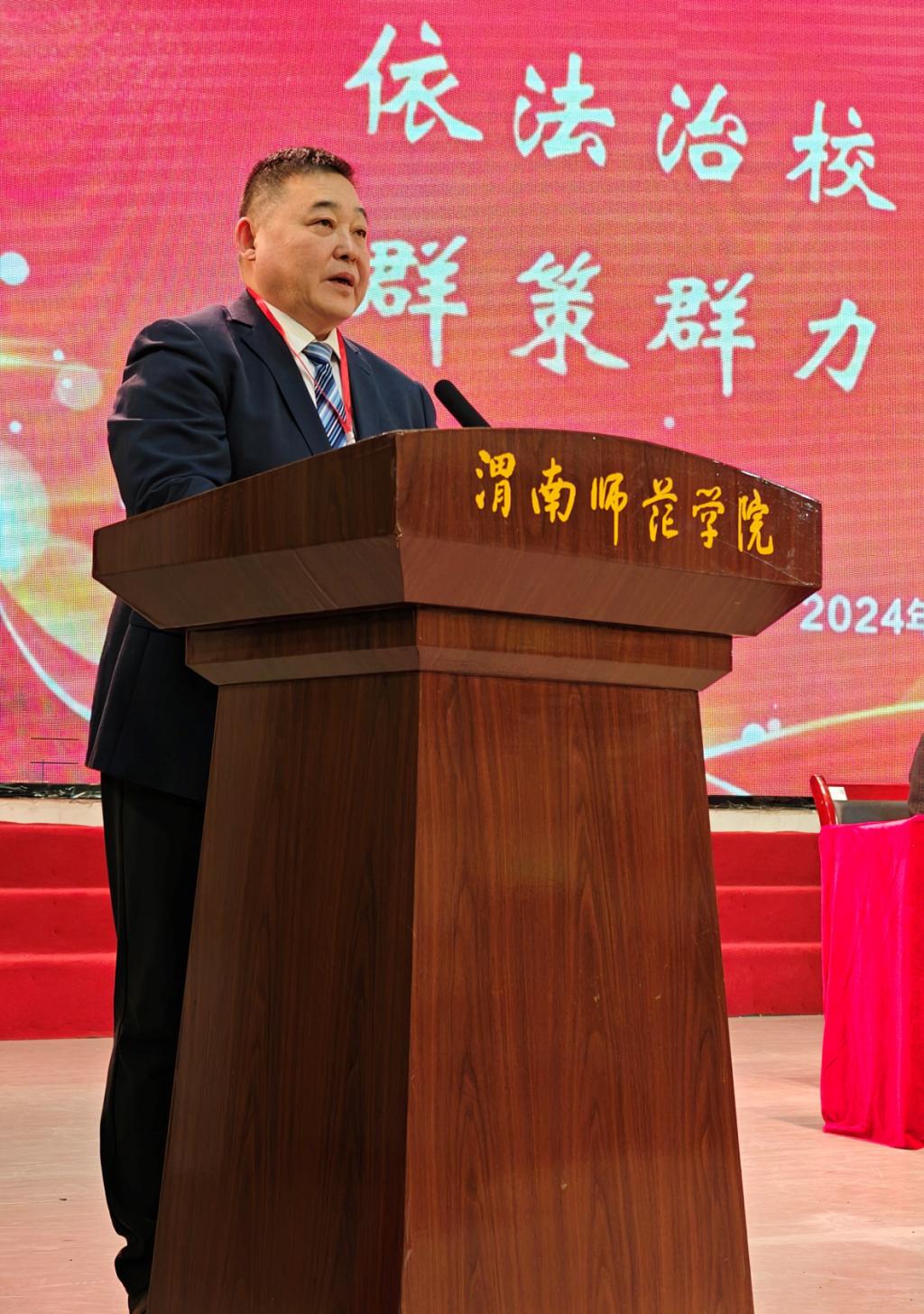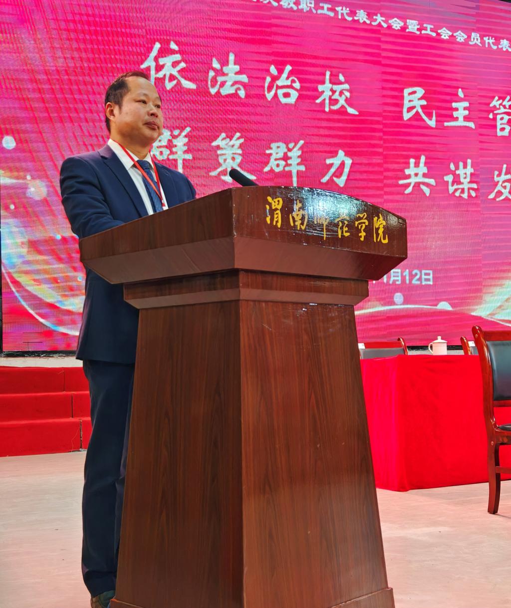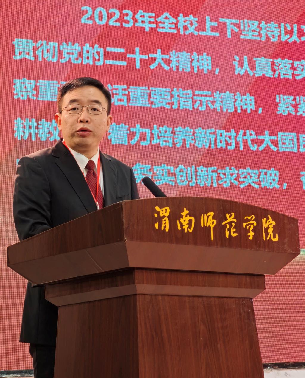 报告分析了新形势下学校高质量发展过程中的新机遇与新契机、新动能和新格局,明确了2024年工作思路和重点任务。他指出,全校上下要以习近平新时代中国特色社会主义思想为指导,学习贯彻党的二十大精神,贯彻落实习近平总书记历次来陕重要讲话重要指示精神,牢记为党育人、为国育才,践行立德树人根本任务,坚持稳中求进、以进促稳工作总基调,开展“本科教学质量提升年”专项行动,加快构建一流人才培养体系,不断提升人才培养质量,以实际行动回答好“教育强国渭师何为”的时代命题,为教育强省、教育强国建设做出更大贡献。