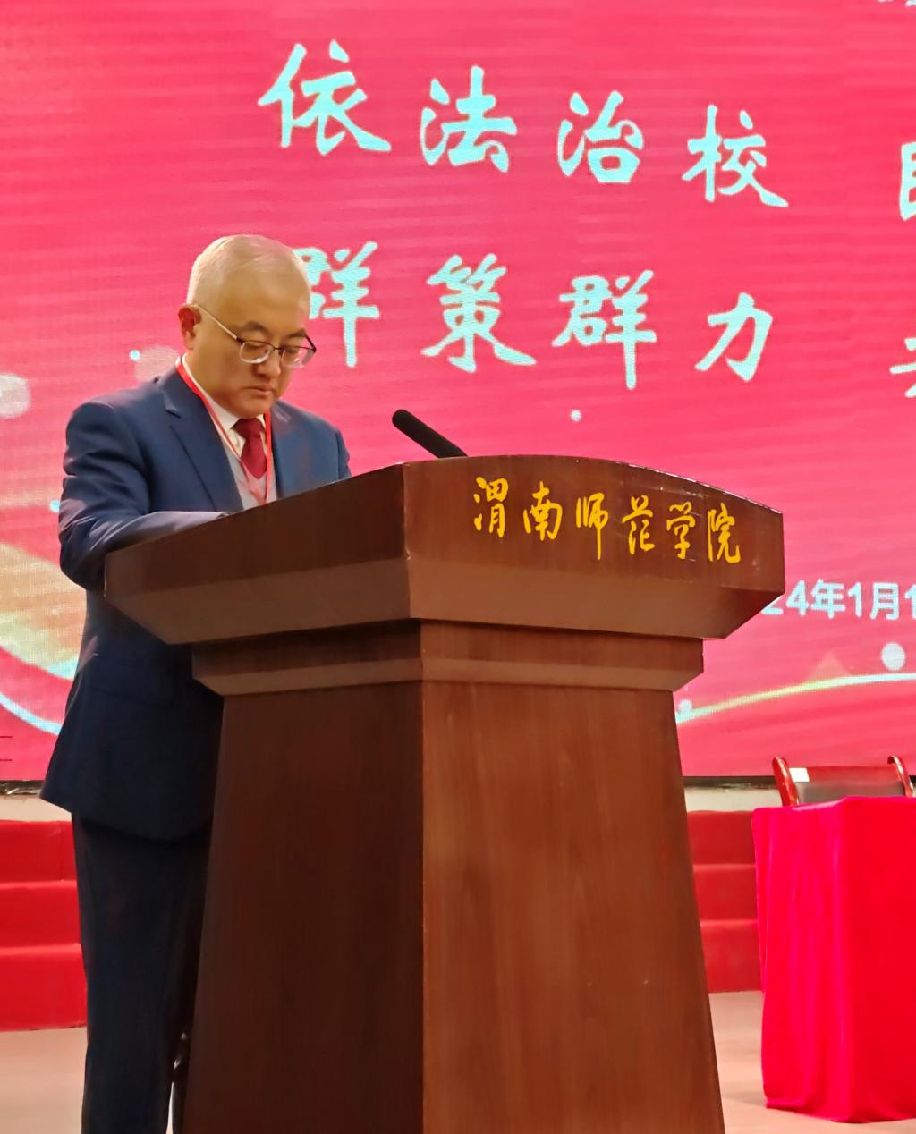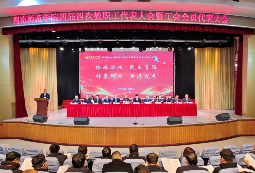 1月12日,渭南师范学院四届四次教职工代表大会暨工会会员代表大会在朝阳校区陶然楼演艺厅召开。学校领导、第四届“双代会”正式代表、特邀代表、列席代表等160余人参加会议。校党委书记卓宇致词并作总结讲话,校长张守华作工作报告,大会分别由校党委副书记、纪委书记、监察专员肖耀刚、校党委副书记汪勇、袁亮主持。