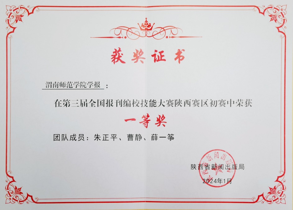 2024年1月16日,在全省新闻出版(版权)工作会议上,陕西省新闻出版局对第三届全国报刊编校技能大赛陕西赛区的优秀团队进行表彰。我校学报编辑部团队荣获一等奖,展现了编辑扎实的专业基本功和风采。