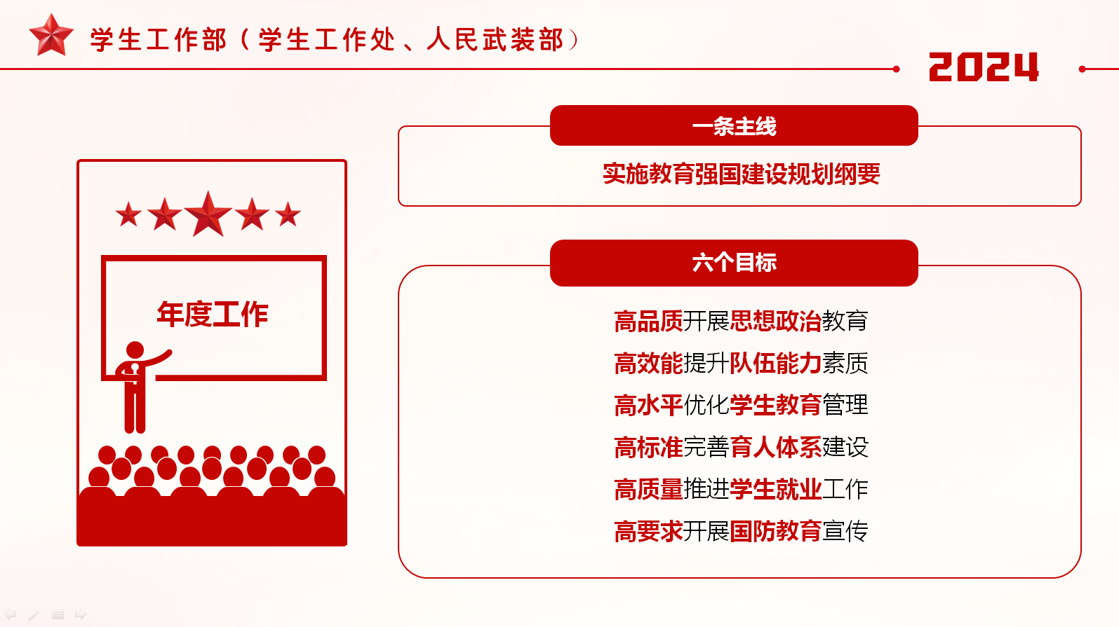 浩荡春风起,奋进脚步疾。为进一步明确工作目标、理清工作思路,营造干事创业的浓厚氛围,激发推动高质量发展的强劲动力,特推出“锚定目标笃行实干 聚力向前共谱新篇”系列报道,集中“晾晒”各二级单位2024年重点工作任务清单,“晒”出比学赶超的新方向,“晒”出实干担当的好作风,形成一项一项抓落实、稳扎稳打干实事的生动实践,以奋斗的姿态合力描绘学校事业高质量发展的崭新图景。