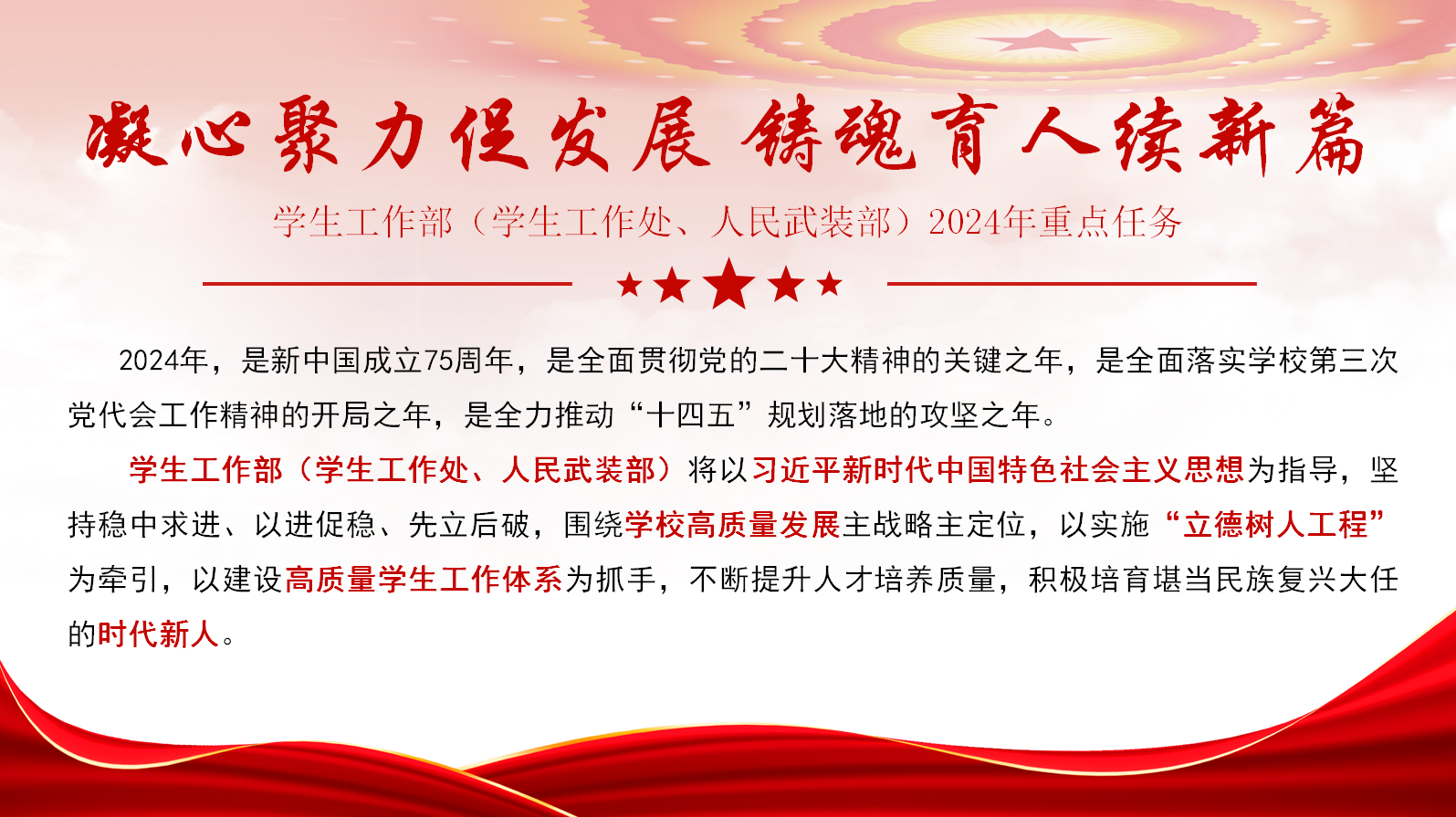 上一条:【要闻速递】党委书记卓宇深入一线检查课堂教学工作 下一条:【锚定目标笃行实干 聚力向前共谱新篇】各二级单位2024年工作要点图解(一)