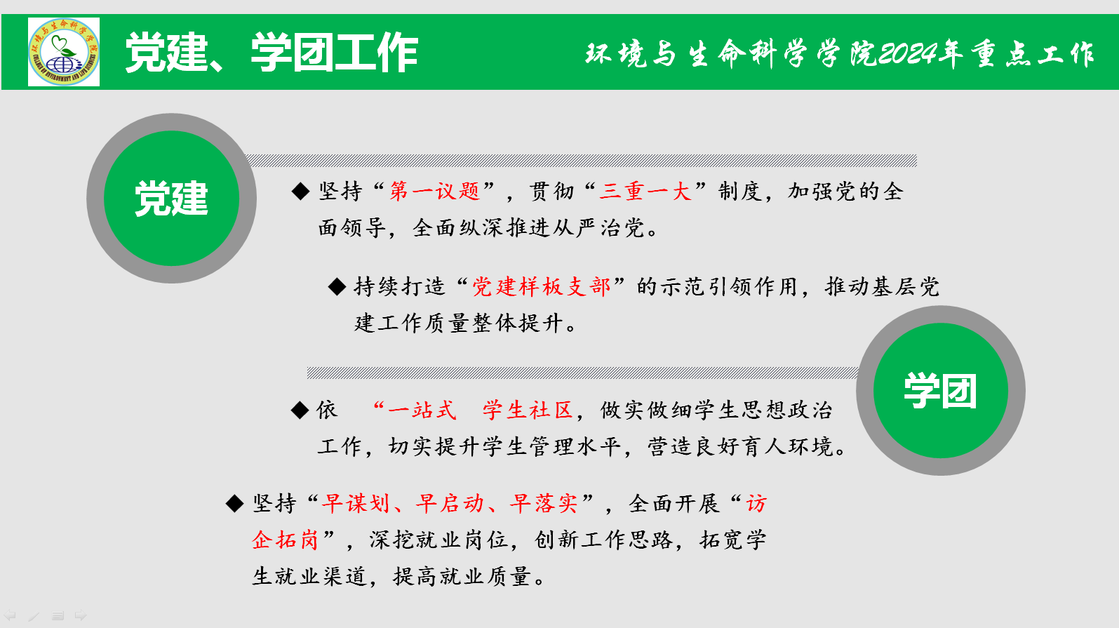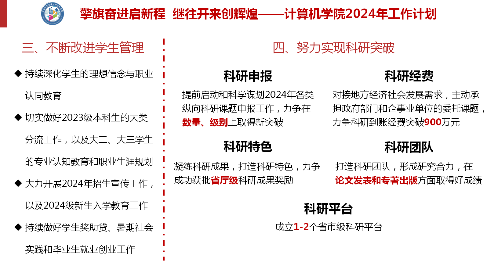 浩荡春风起,奋进脚步疾。为进一步明确工作目标、理清工作思路,营造干事创业的浓厚氛围,激发推动高质量发展的强劲动力,特推出“锚定目标笃行实干 聚力向前共谱新篇”系列报道,集中“晾晒”各二级单位2024年重点工作任务清单,“晒”出比学赶超的新方向,“晒”出实干担当的好作风,形成一项一项抓落实、稳扎稳打干实事的生动实践,以奋斗的姿态合力描绘学校事业高质量发展的崭新图景。