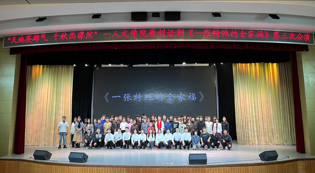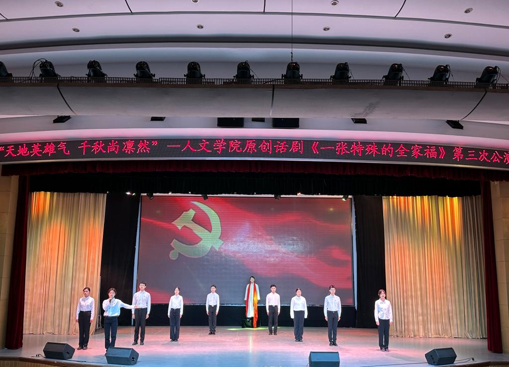 4月18日晚,人文学院原创话剧《一张特殊的全家福》在陶然楼演艺厅完成校内第三次公演。党委书记卓宇,渭南小学师生代表,渭南市教育局机关部分党员干部,全省全民国防教育工作培训班学员,陕西省教师培训管理者高级研修班学员等300余人观看演出。