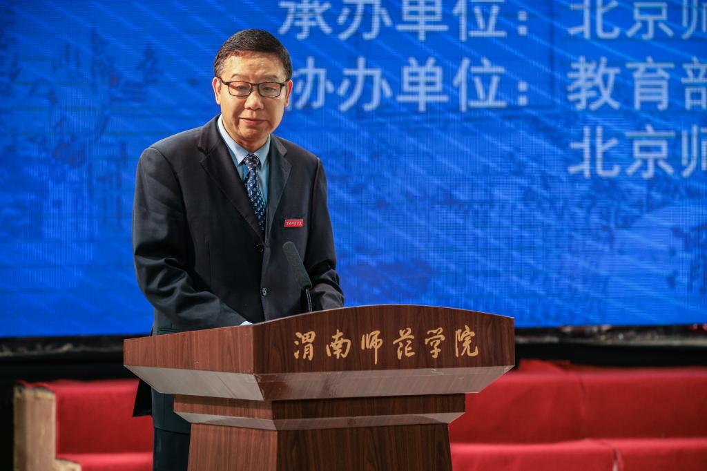 朱旭东发表视频致辞,他期待渭南师范学院将北京师范大学教师教育研究中心西北分中心打造成为我国西部地区教师教育研究与实践人才培养基地,服务于西部地区教师教育的发展,指出本次论坛既是一次思想的盛会,也是一次西部地区教师教育行动的集结号,呼吁大家以此次论坛为契机,深入交流,凝聚共识,共同推动教师教育事业发展。