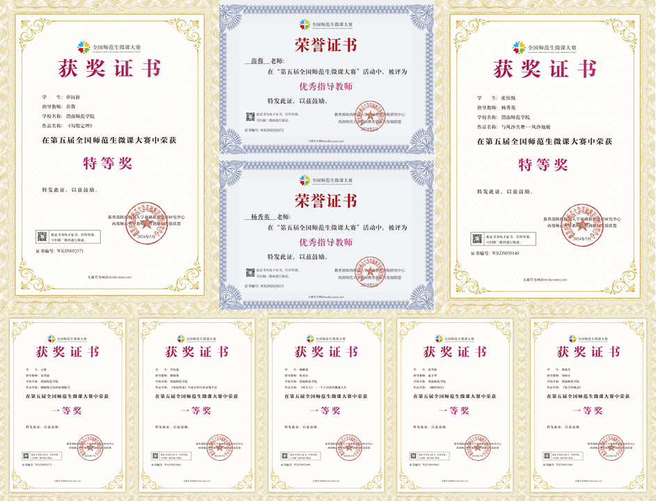 近日,第五届全国师范生微课大赛公布了获奖名单,我校共有20项参赛作品获奖,其中特等奖2个、一等奖7个、二等奖5个、优秀奖6个。我校获“优秀组织单位奖”,苗蓉、杨秀英获优秀指导教师奖。