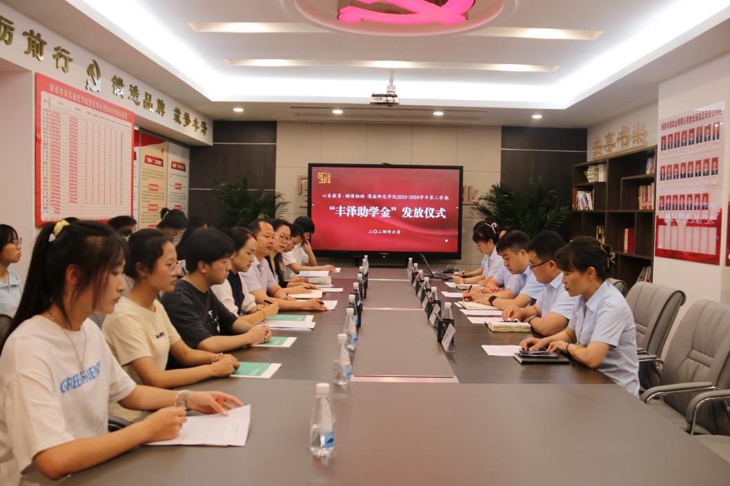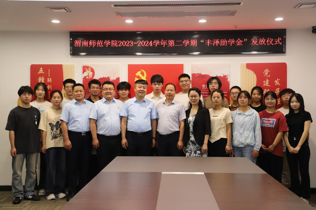 6月12日,我校2023-2024学年第二学期“丰泽助学金”发放仪式在陕西丰泽实业有限公司举行。陕西丰泽实业有限公司党支部书记、董事长田应强,副总经理刘延,党支部副书记张健,学校党委副书记汪勇,学生工作部(处)部长田耿辉以及公司相关负责人,受助学生参加仪式,仪式由丰泽实业工会主席、行政经理王娟主持。