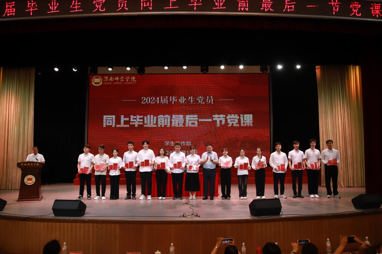 卓宇为学生党员代表赠送《中国共产党章程》《中国共产党纪律处分条例》以及党徽,希望各位毕业生党员在以后的学习工作中时刻牢记党员身份、以党员标准严格要求自己。