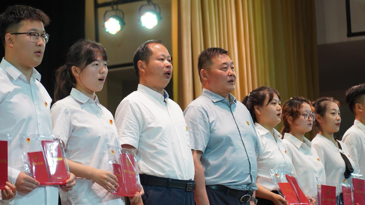 党课在庄严的国歌声中开始。与会人员在学生工作部(处)部长田耿辉的带领下,面对党旗庄严宣誓,重温入党誓词。