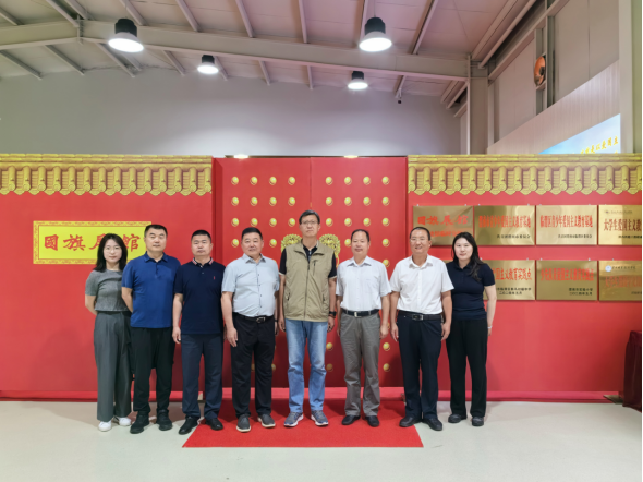 姚辉一行实地考察调研了我校“国旗展馆”,听取了校团委书记赵琦关于“国旗展馆”设计理念和展陈思路的汇报。“国旗展馆”整体庄重大气,以“国旗红”为主色调,全馆铺设红色地毯。进入展馆红色大门,迎面为全幅展示的“天安门广场国旗”。国旗置于大型展柜之中,展柜长度5.4米,高度4.3米,底部厚度1米,充分完整展示出“天安门广场国旗”的宏伟风采。国旗正对面为长7米、高2.5米的天安门城楼全景图片,彰显出“天安门广场国旗”的独有特质。