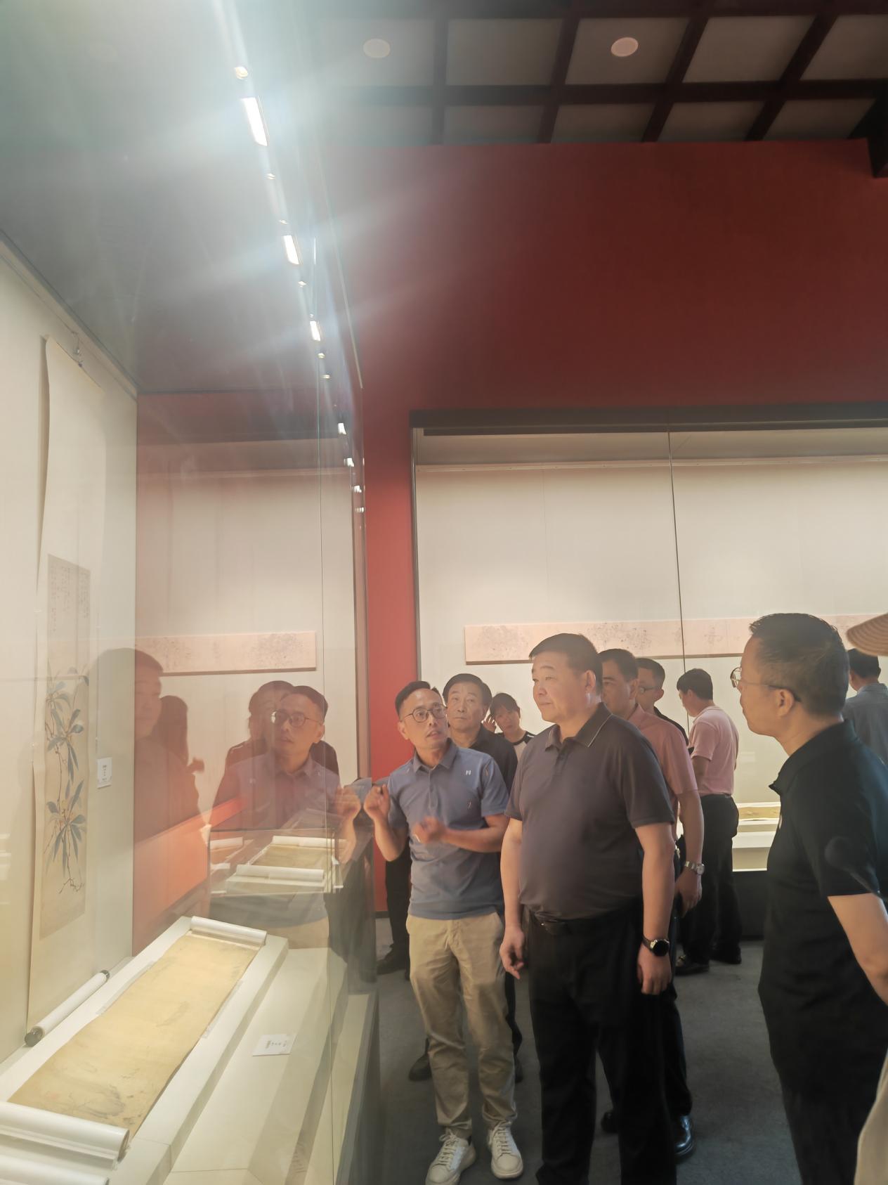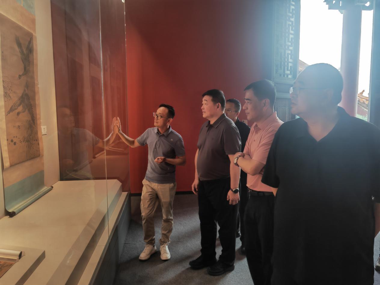 调研期间,卓宇一行到渭南市人民政府与故宫博物院主办的“国宝重光——故宫博物院国家级非遗古书画摹制技艺展”。了解展出所藏晋、唐、宋、元、明、清各时代经典之作的摹本,内容涵盖山水、花鸟、人物等多种题材,了解不同时代名家对经典书画审美的深刻认知和传统绘画技法的独到解读。