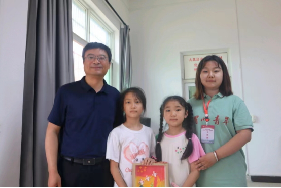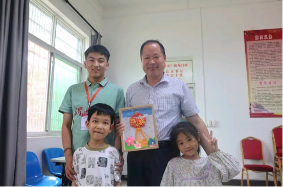 当天,孩子们在支教队员们的指导下,将自己创作的粘土画作品送给校领导们。