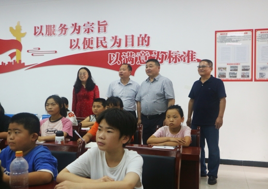 卓宇一行实地考察了支教团的住宿条件及工作环境。并深入课堂,详细了解了支教内容、招生情况、课程安排。观看了同学们的书法和俄语教学,与实践队员和小学员进行亲切地交流。