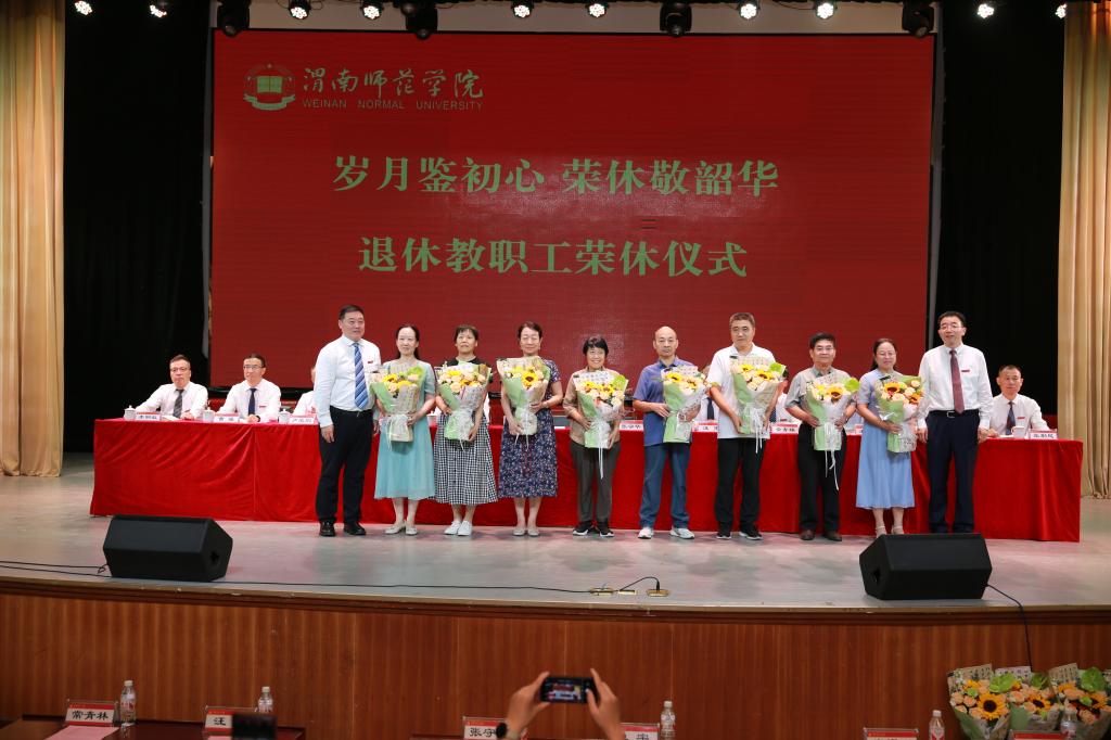 卓宇、张守华为荣休教职工代表敬送鲜花,感谢退休教职工为学校教育事业发展作出的贡献。