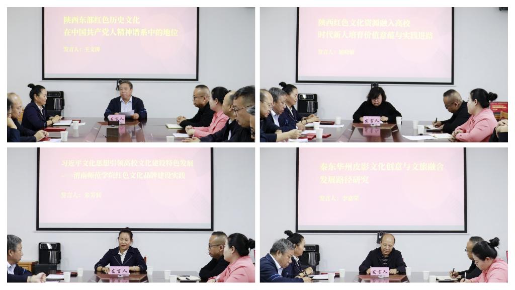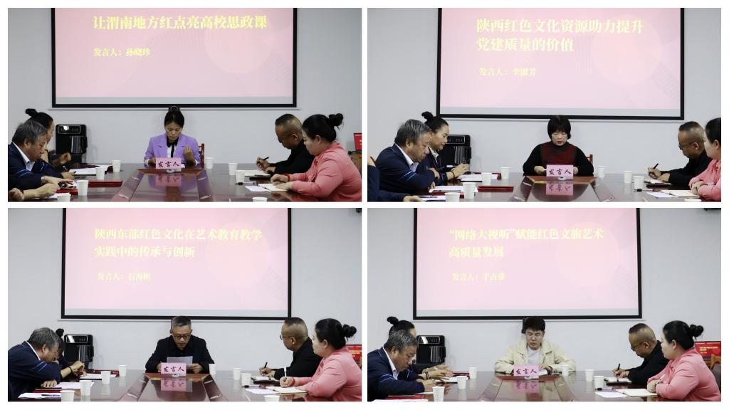 “学术交流”活动邀请到渭南师范学院王文涛、屈晓娟、朱芳转、李富荣、孙晓珍、李淑芳、石海彬、于占豪等八位专家学者作论坛交流发言。论坛交流发言人分别围绕精神谱系、价值意蕴、文化建设、文旅创新、高校思政、党建价值、艺术文创和网络赋能等方面阐述对陕西东部红色文化文旅艺术创新的思考、实践与价值论证,体现了我校师生情系当地红色文化、追寻身边红色足迹、书写秦东红色历史、传承红色基因与红色力量的责任担当。