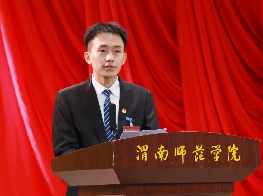 大会在雄壮的国歌声中开幕。校党委副书记汪勇代表学校党委对大会的召开表示热烈的祝贺,向出席大会的全体代表致以亲切的问候,向全校青年朋友们致以美好的祝愿。对我校学生会紧紧围绕学校中心工作,团结带领广大同学锐意进取、奋发有为,在服务学校发展、开展社会实践、志愿服务活动、校园文化活动、日常服务同学等各项工作中取得的成绩予以肯定,他指出,要坚定信念,提升格局,做好青年思想引领的带头人。要增长才干,躬身笃行,建好服务青年发展的新阵地。要自我革命,持续求索,搭好引领青年成才的进步梯。希望学代会代表和新一届学生会的全体成员,一定能够以全面贯彻落实党的二十届三中全会精神为指引,始终坚持正确的政治方向,团结带领全校学生,继承和发扬我校学生会组织的优良传统,以引领同学、联系同学、服务同学为己任,履行承诺、勇担使命,为把学校建设成为特色鲜明的一流师范大学而努力奋斗。
