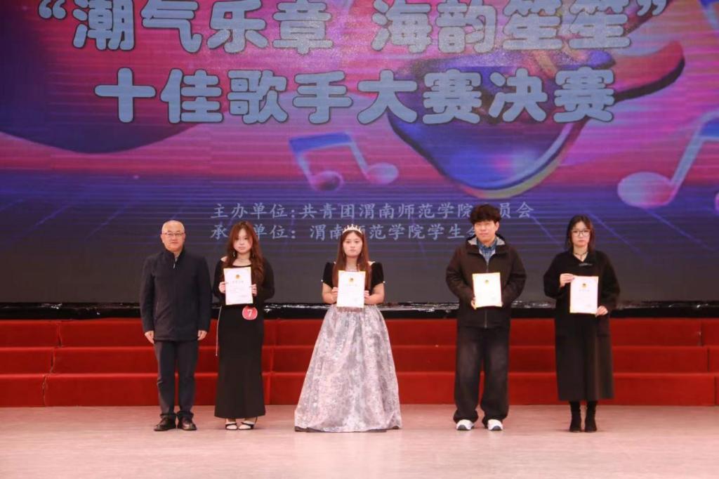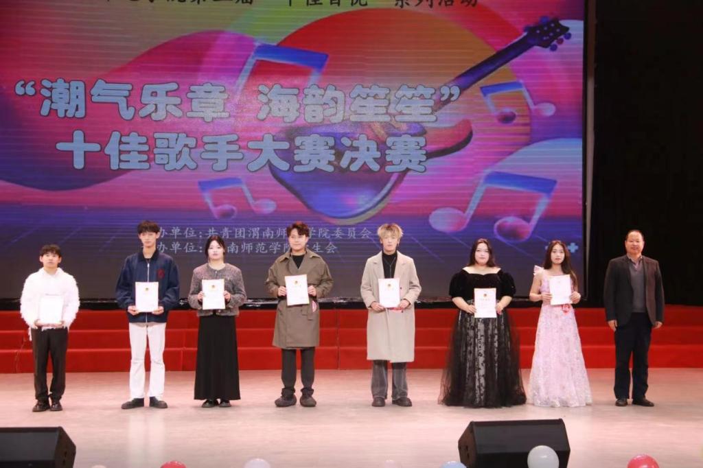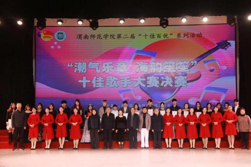 11月20日晚,由共青团渭南师范学院委员会主办,渭南师范学院学生会承办的“潮气乐章 海韵笙笙”校园十佳歌手大赛决赛在陶然楼演艺厅隆重举行。校党委副书记汪勇、袁亮,校团委书记赵琦出席本次活动,400余名观众观看比赛。