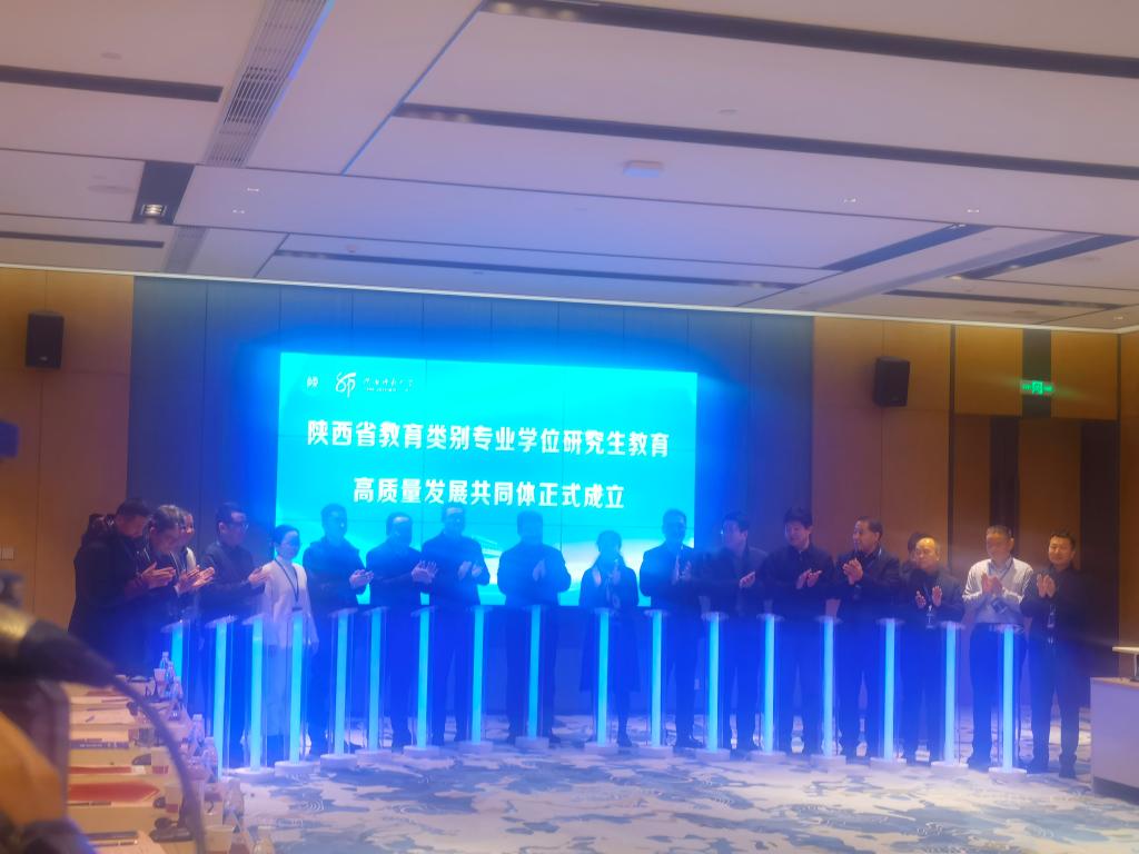 12月10日上午,陕西省教育专业学位研究生教育高质量发展共同体成立大会在陕西师范大学长安校区召开,会议由陕西师范大学主办,省内15所高校以及教育专业学位研究生实践基地代表参会,陕西省教育厅副厅长吴振磊,陕西师范大学党委常委、副校长杨祖培出席会议并致辞,我校副校长卢爱刚、学科建设办公室(研究生部)副主任秦玉伟参加成立大会。