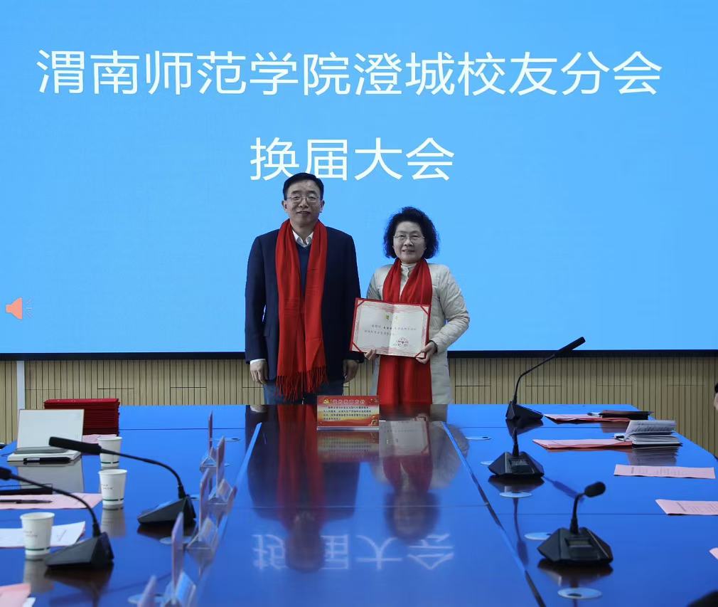 袁亮宣读澄城校友分会新一届组织机构人员提名名单。会议选举产生了新一届澄城校友分会领导班子。张守华为新一届澄城校友分会领导班子成员颁发了聘书。