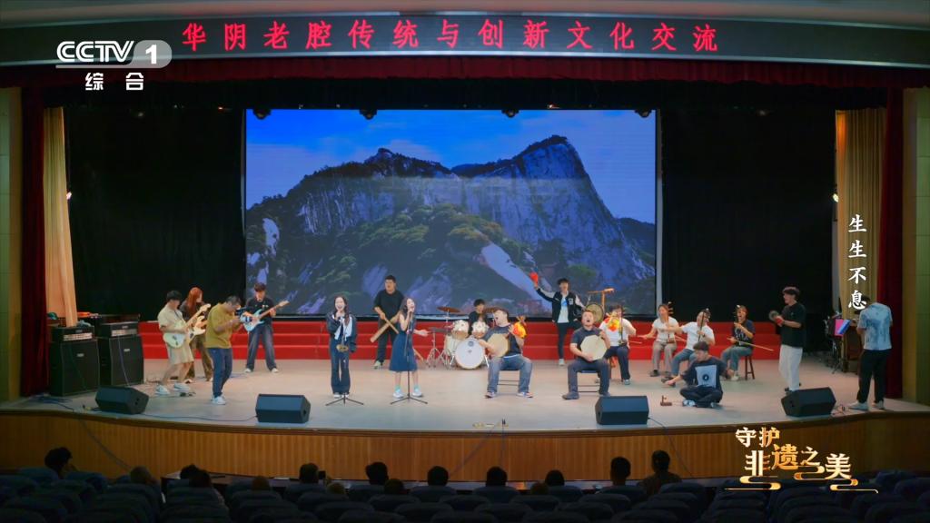 12月23日,央视综合频道(CCTV-1)纪录片《守护非遗之美》播出国家级非遗项目华阴老腔传承发展专题,节目播放了我校大学生老腔团与华阴老腔非遗传承人同台亮相的精彩片段。