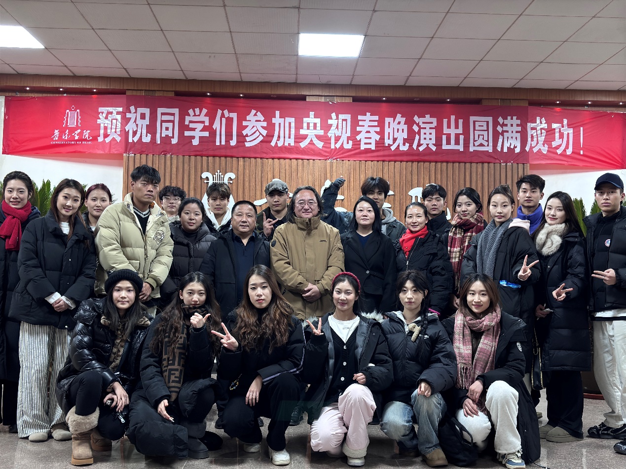 日前,我校音乐学院舞蹈学专业学生受邀赴北京参加央视2025年春晚演出。临行前,音乐学院全体处科级干部与参演学生齐聚一堂,举行誓师动员。