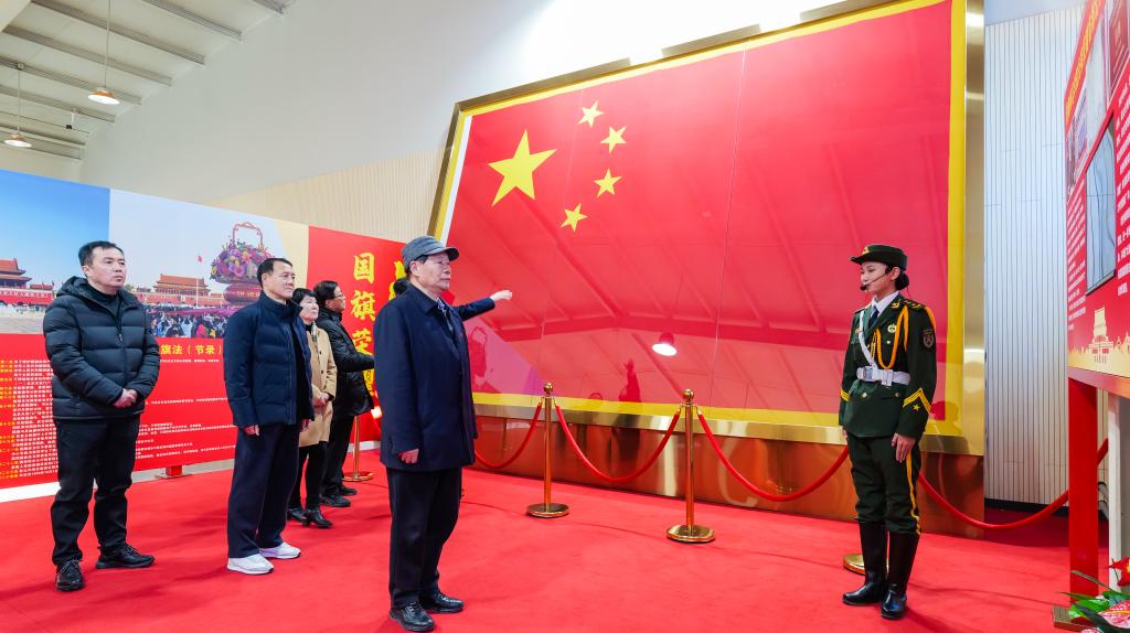 点映式前,戚建国上将一行参观我校国旗展馆,观看国旗护卫队现场训练,听取学校大思政课一体化建设和全民国防教育“铸魂工程”汇报,观看“浴血困牛山”点映式专题书画展,观赏了师生以“浴血困牛山”为历史背景原创的诗歌朗诵《信仰》。