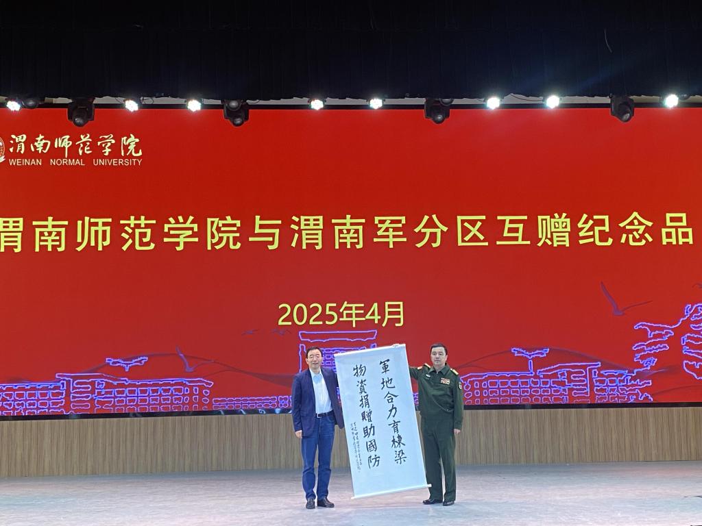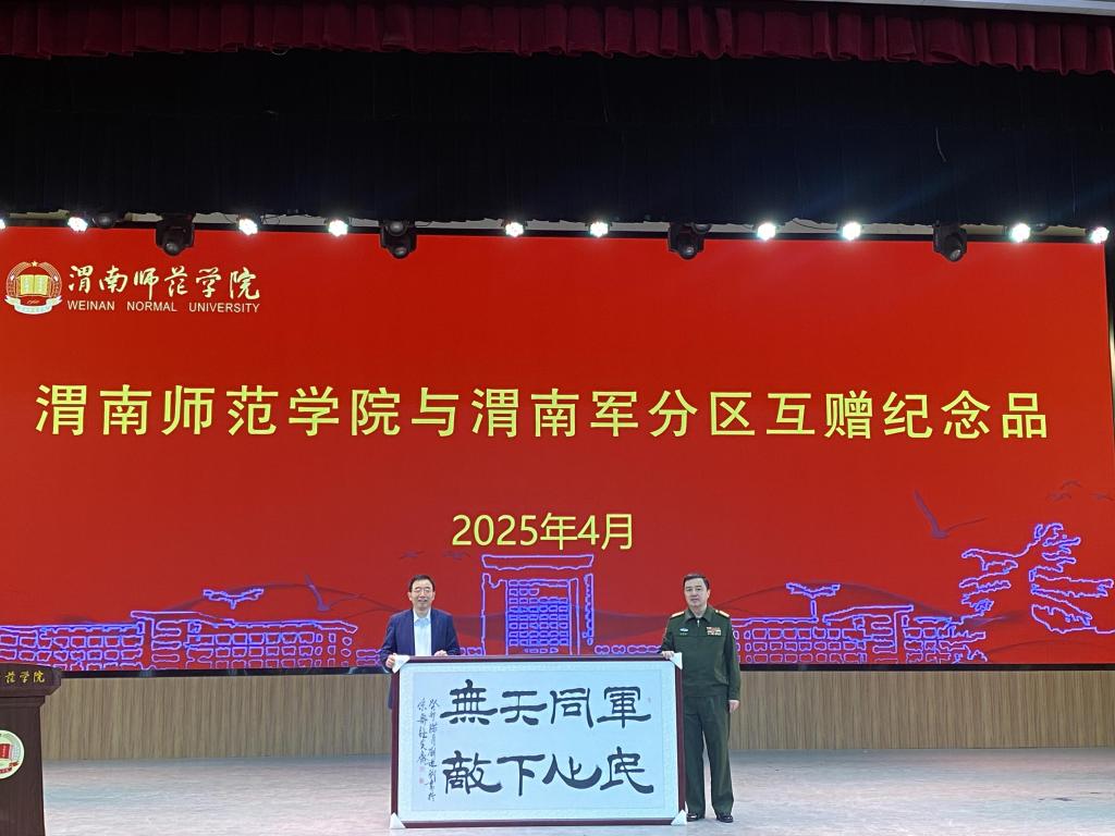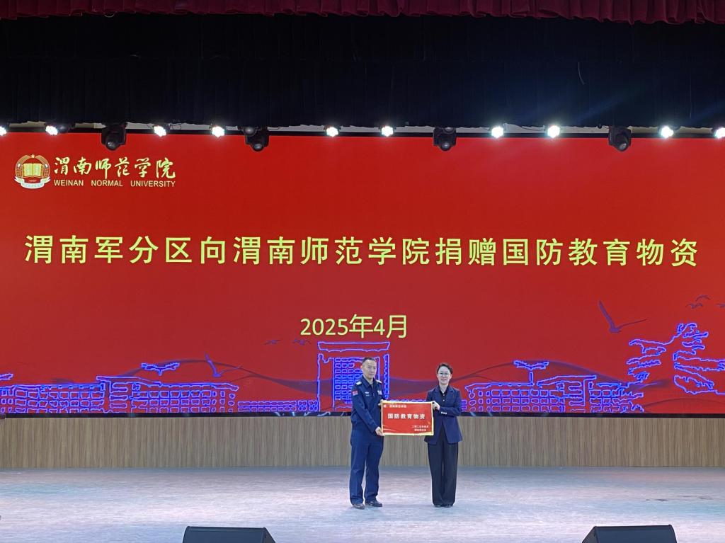 4月11日,“军地同心 强军育才”国防教育物资捐赠仪式在学校演艺厅举行。渭南市委常委、渭南军分区大校政治委员何勇进,渭南师范学院党委书记、校长张守华出席捐赠仪式。捐赠仪式由学校党委副书记常青林主持,在渭南军分区代表、渭南各市区县武装部部长、中小学校长代表、学校师生代表共同见证下举行。