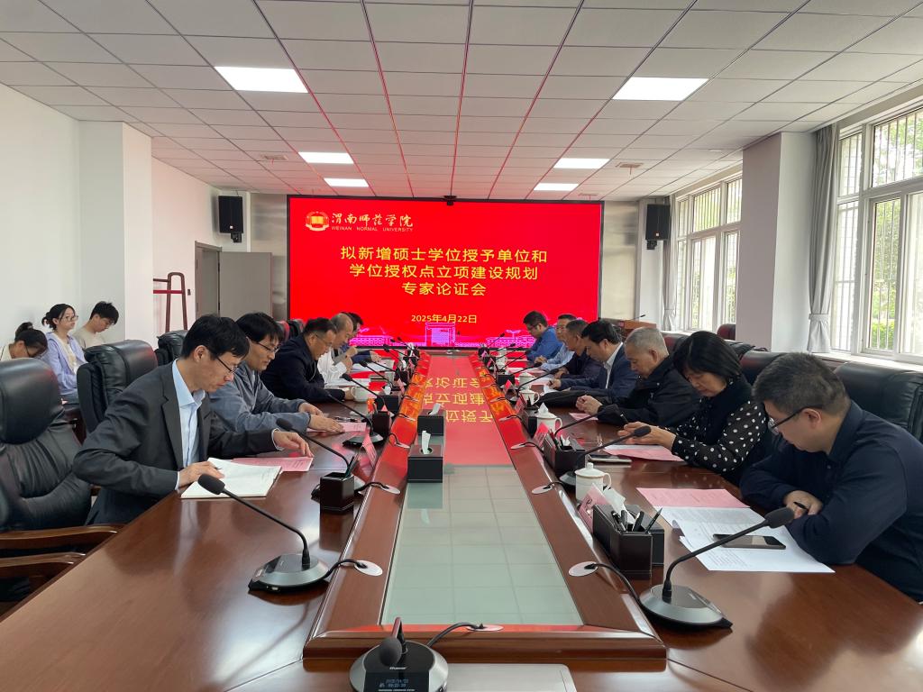 4月22日上午,学校组织召开2025年拟新增硕士学位授予单位和学位授权点立项建设规划专家论证会,西北大学赖绍聪教授、西安交通大学殷勤业教授、长安大学巨永锋教授、陕西师范大学郑海荣教授、西安工业大学范新会教授、西安电子科技大学研究生院副院长付凯元教授、西安工业大学学科办主任、研究生院副院长金洗郎教授受邀指导。专家论证会由副校长曹强主持。
