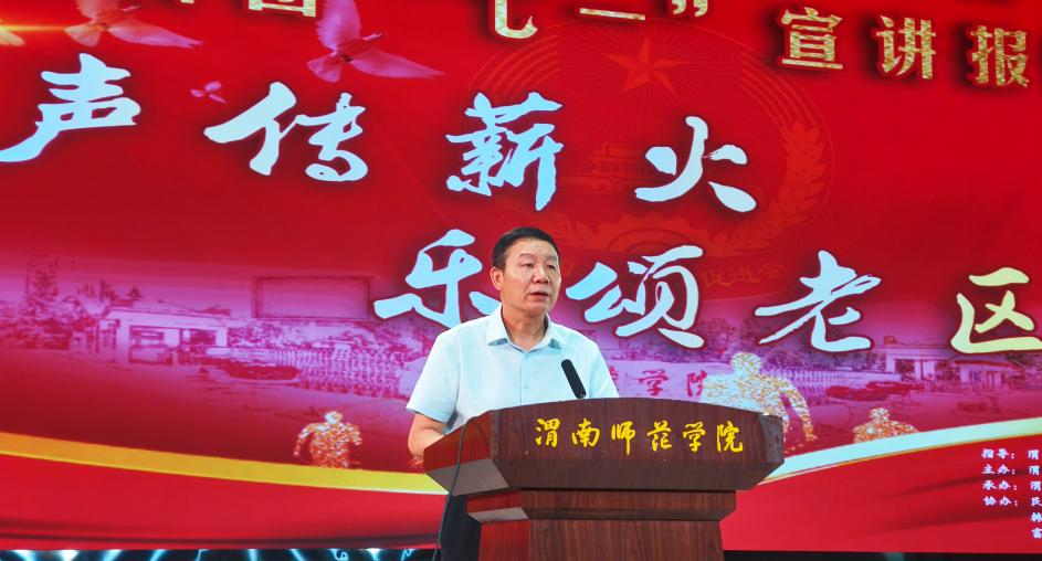 6月27日上午,“声传薪火·乐颂老区”——渭南市老区建设促进会红色宣讲团“七一”宣讲报告会在我校举行,渭南市老区建设促进会会长刘巧莲、党委副书记、纪委书记、监察专员员肖耀刚,渭南师范学院宣讲团代表出席此次活动。