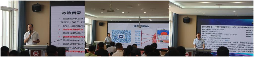 活动中,陕西省科技资源统筹中心科长唐照霄进行了陕西省“三项改革”政策宣讲,详细解读了相关政策要点;建行渭南分行普惠部纪子凡介绍了金融支持科技创新和成果转化相关政策。渭南师范学院发布了学校近三年“三项改革”成果,并有10个项目进行了精彩路演。计算机学院朱创录教授的宽速喷墨数码印刷多喷油拼接自动调整方法已授权发明专利,可解决数字印刷工艺调整过程中喷头拼接误差大、人工依赖高的问题;化学与材料学院周小强副教授的含铁酚酸资源化处理中结晶与废液脱色新方法已完成原型验证,可解决水杨酸升华残渣中高值小分子回收时的结晶和废液脱色问题;环境与生命科学学院李荣荣副教授的畜禽粪污堆肥利用已申请专利,实现废弃物资源化利用;物理与电气工程学院何冰教授的工业影像增强及嵌入式芯片关键技术研究已授权计算机软件著作权,可解决工业X射线影像图像受噪声干扰造成的模糊问题,改善图像清晰度和视觉效果;物理与电气工程学院葛春平教授的工业CT三维重建技术已授权国际发明专利一项,国内发明专利一项,通过自研的定向重建方法解决了工业CT重建速度慢的问题,使其可应用在快速在线无损检测行业。路演涵盖人工智能、先进制造、生物医药、节能环保、新材料等多个领域,充分展现了学校在相关学科领域取得的科技成果。