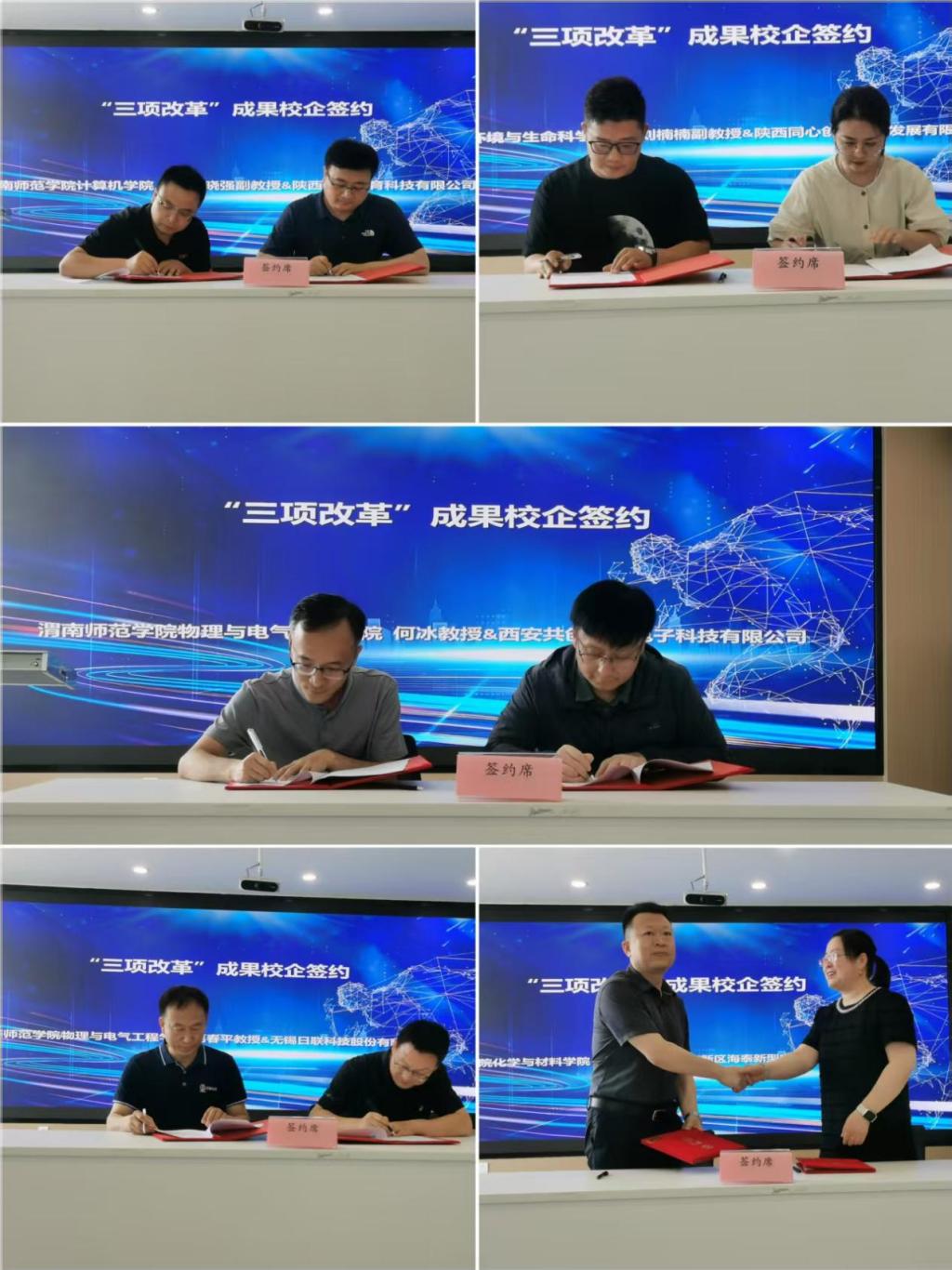 活动现场举行了“三项改革”成果校企签约仪式,基于大模型的田径技术分析软件与陕西酷体体育科技有限公司、食用菌保鲜及高值化休闲食品加工应用与陕西同心创发农业发展有限公司等5项成果成功签约,成果形式包括获批专利、研究报告、硬件装置、软件等,为校企联合攻关、技术转让、成果作价入股等转化模式的落地奠定了基础。
