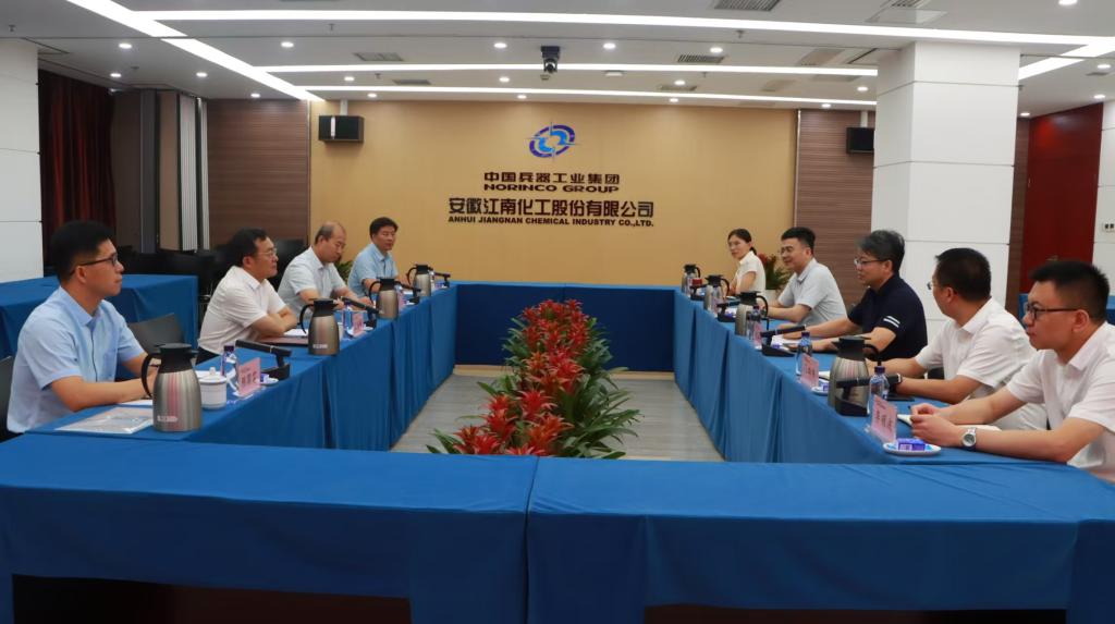 7月13日,王海峰一行首先抵达江南化工股份有限公司。在与公司相关领导的座谈中,王海峰代表学校向我校优秀校友、公司总裁代五四致以诚挚问候,着重强调了深化校企合作对于人才培养和科研创新的重要性,提出希望在学生实习实践基地建设、毕业生就业岗位拓展、科研项目联合攻关等领域开展深度合作,实现资源共享与互利共赢。与会双方围绕产教融合模式创新、校企协同育人机制构建等议题展开热烈探讨,达成多项共识。
