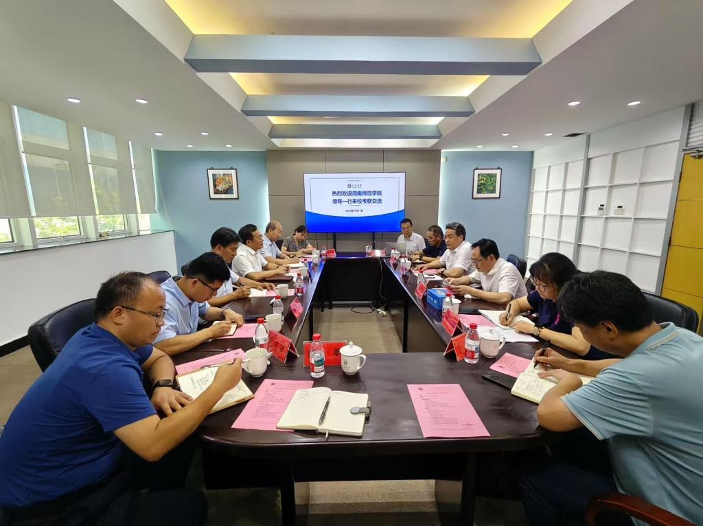王海峰详细阐述了我校近年来在师范类学科建设、人才培养质量提升、服务地方经济社会发展等方面的进展与成效,并明确此次到访旨在学习借鉴江苏大学在师范人才培养、创新创业教育等领域的先进理念。双方围绕师范专业课程体系优化、创新创业平台共建、跨学科科研合作、校地资源整合及社会服务模式创新等核心议题进行深入研讨,就建立常态化交流机制、探索合作项目落地路径达成初步意向。