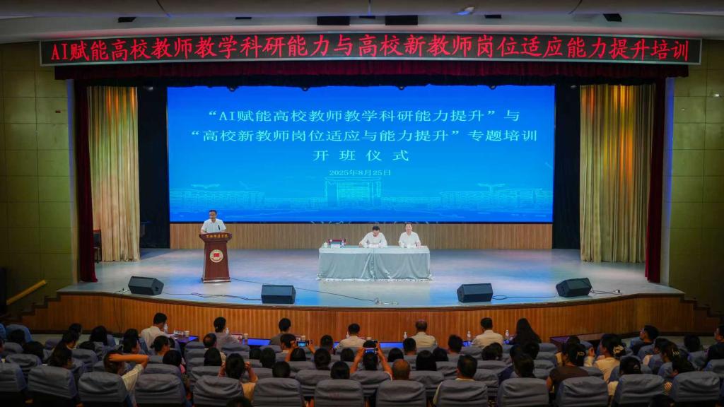 8月25日上午,由中国高等教育学会指导、中国高等教育培训中心主办、渭南师范学院承办的“AI赋能高校教师教学科研能力提升”与“高校新教师岗位适应与能力提升”培训班开班式在渭南师范学院举行。中国高等教育学会副会长、中国高等教育培训中心主任姜恩来,渭南师范学院党委副书记、校长李强,中国高等教育培训中心副主任刘好汉,中国高等教育学会培训主管黄美凤等出席开班式。