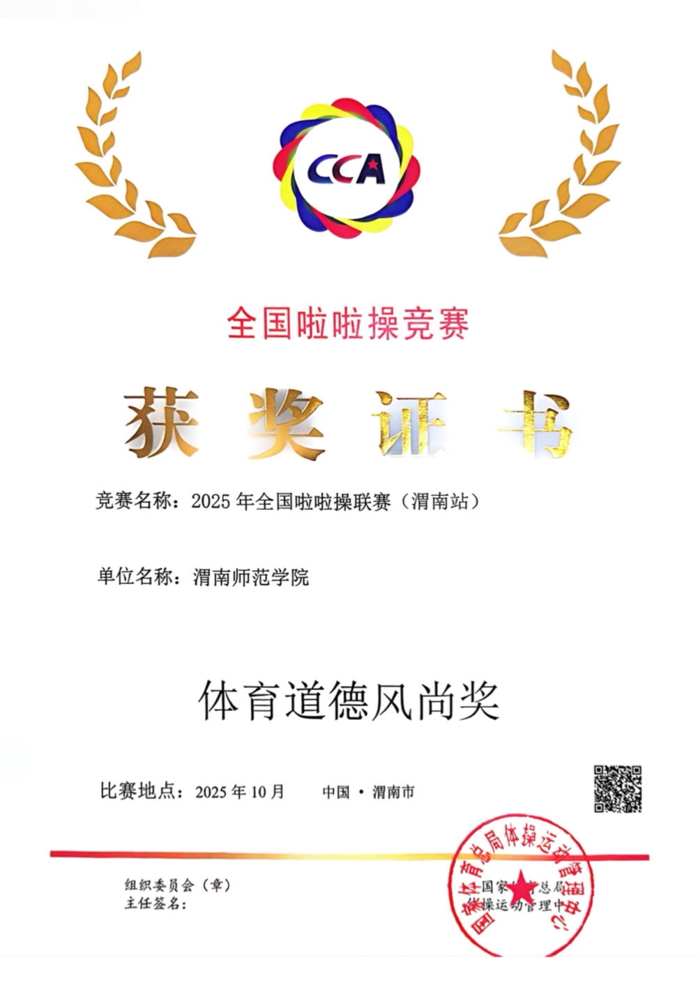 10月19日,2025年全国啦啦操联赛(渭南站)在我校云帆体育馆圆满落幕。本次赛事由国家体育总局体操运动管理中心、中国蹦床与技巧协会联合主办,吸引了来自全国各地的千余名不同组别的队员们同台竞技,共展青春风采。