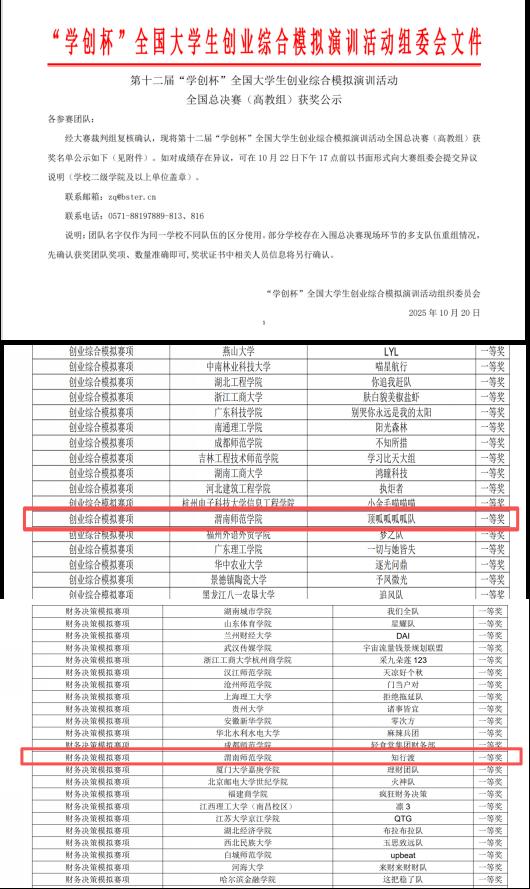 近日,第十二届“学创杯”全国大学生创业综合模拟大赛全国总决赛在成都理工大学落下帷幕。由我校经济与管理学院派出的创业综合赛道 “顶呱呱呱呱队”和财务决策赛道“知行渡队”团队,在历经半年多时间锤炼和打磨,通过省赛、全国半决赛的层层选拔,最终从全国1500多所高校30万余支队伍中脱颖而出,均获全国总决赛一等奖。