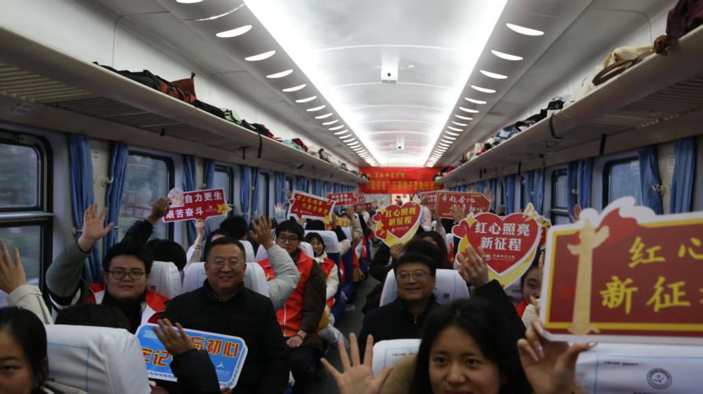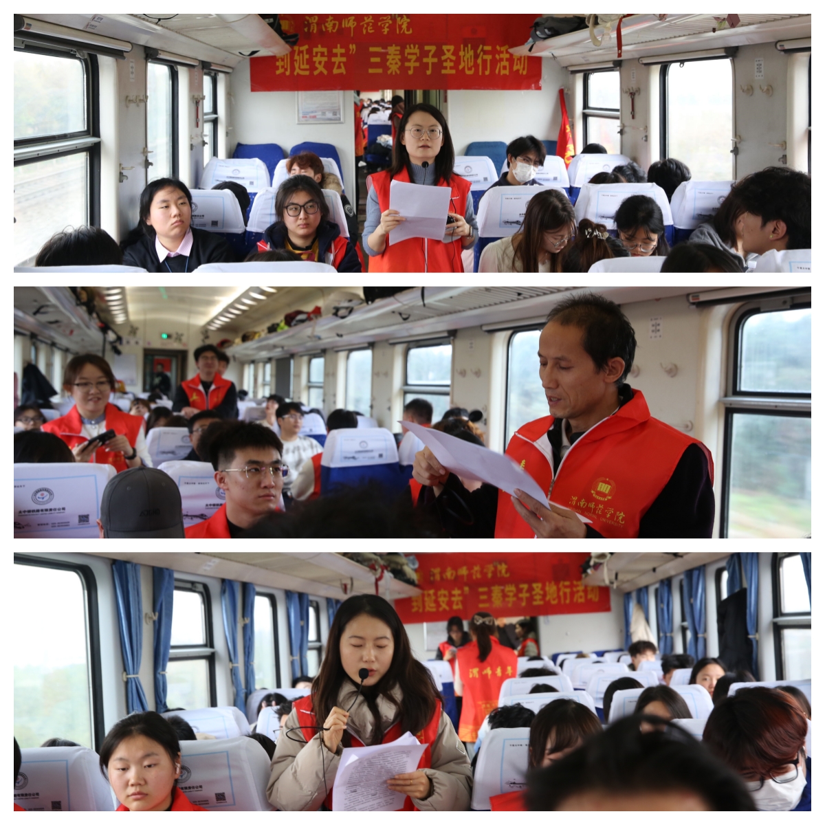 在红色教育专列上,校团委邀请我校马克思主义学院教师围绕“延安精神”开展别开生面的“行走的思政课”,列车车厢成为同学们学习红色文化的重要阵地。