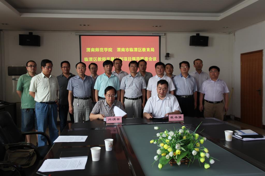 与会人员研究成立了临渭区教师专业发展计划项目工作领导小组,并讨论确定了项目实施计划。双方商定,在临渭区各镇初中、中心小学共建教师教育协同创新实验区基地学校,接纳我校师范生的教育实习、教育见习等实践教学活动,与我校教师合作开展教育研究及学术交流,协调安排我校教师的教育调研活动;我校选派师范生以学期为单位到基地学校实习,并在我校建立临渭区教师培训基地,对临渭区教育局选派的教师进行业务提升培训。会议双方还表示,今后将继续深化合作,共同探索和拓展师资培养的新途径,实施师资培养新项目,实现培养高素质师资合作共赢的目标。