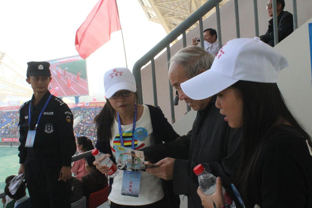 为做好市运会志愿服务工作,学校党政领导高度重视,并要求具体组织部门精心组织,合理安排,做好服务,提前做好志愿服务学生的培训工作。校团委根据学校要求,积极与组委会进行接洽,重点做好了志愿服务学生通用知识、礼仪服务和岗位实训的培训工作,帮助志愿者了解和掌握服务内容与工作技能。校社团联合会、校阳光志愿者协会组织150名学生参加志愿服务,主要负责各个通道口的安检检票、主席台和贵宾区的接待、引导参加开幕式观众入场以及背景墙的布置。在安检观众入口、贵宾区入口、运动员入口,志愿者们轮流上岗,在各自的服务岗位上恪尽职守,无私奉献,用认真踏实的服务彰显了师院志愿者风采。