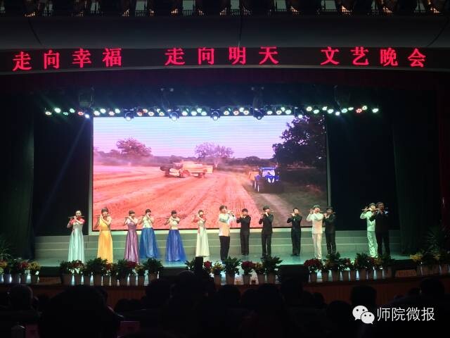 12月20日晚,由党委宣传部、党政办公室主办,音乐舞蹈学院、团委承办的“走向明天走向幸福”2015年元旦文艺晚会在陶然楼演艺厅隆重上演。学校领导,陕西高校学报研究会2014年学术年会参会人员,学校各部门负责人及部分学生代表370余人观看了演出。整场晚会分为上篇“开启春天”、中篇“心花怒放”、下篇“走向未来”三个篇章,整场晚会精彩纷呈,高潮迭起,充分展现了我校大学生积极向上、朝气蓬勃的精神面貌,最后,晚会在我校校歌《向创幸福的方向前进》中落下帷幕。(通讯员 大学生记者团 蒋琼 王秋 指导老师 张统宣)